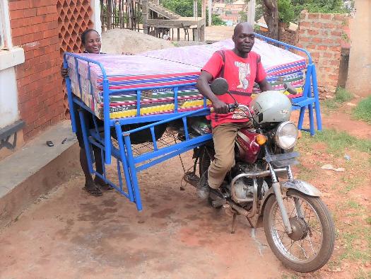 At our office, we loaded a triple bunk bed, three mattresses, sheets, blankets and mosquito nets onto a motorcycle taxi. |