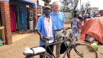 Peter with Joseph and his bicycle. |