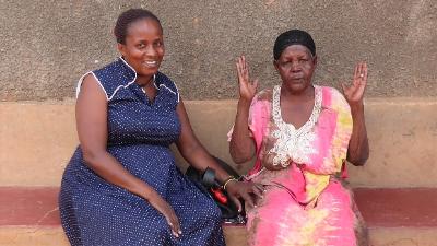 Our staffer Agnes is happy as JjaJja gives thanks to God. |