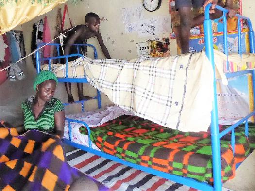 The old grandmother sleeps on one bed. Joyce, Catherine, and Raymond shared the other. Kevin and Frank, and later Ian, slept on the piece of foam next to Joyce. |