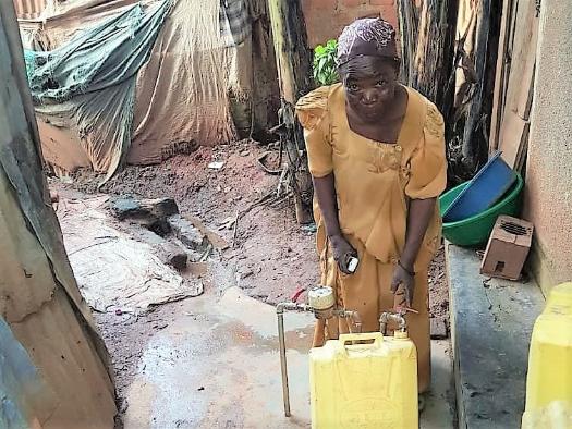 Grace supports herself and her orphaned granddaughters by selling water from a tap installed by her late son. |