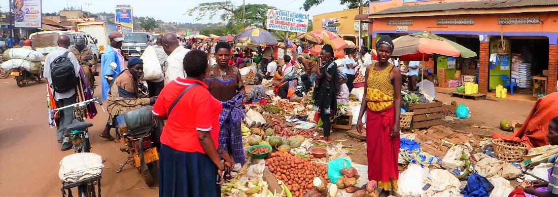 Juliet sells vegetables at the sprawling and colorful Kasubi market. |