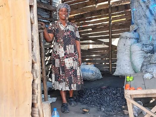 Dorothy sells charcoal from this shack near her home. |